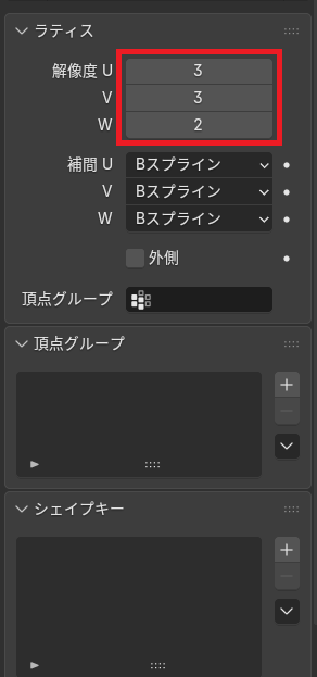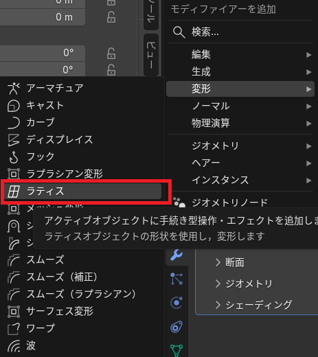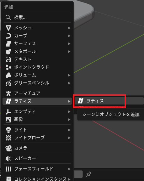 「Shift」 +「A」からラティス→ラティスを選択