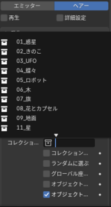 実は選択していたのが「11_星」で、正しくは「星」のコレクションだったのだ。Blenderの項目に表示しきれてなくて、違うの選んでしまう経験が前にもあった気がする。