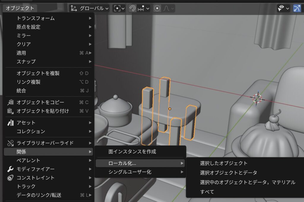またチャッピーに確認し、「オブジェクト」→「関係」→「シングルユーザー化」→「オブジェクトとデータ」を押すらしい。