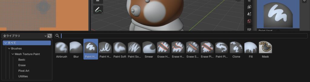 よく見たらブラシアセットって画面の下にあんじゃん。