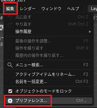 編集→プリファレンスを押す。
