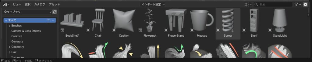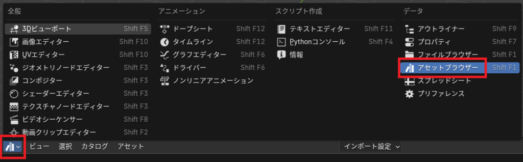 アセットブラウザーを開く。