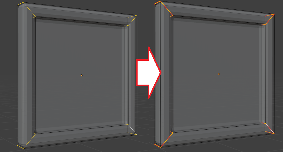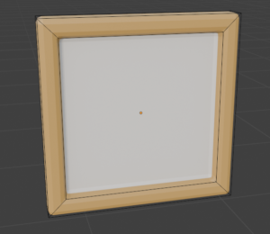 上の部屋に絵が飾られていない額縁がある。この額縁をUV展開してテクスチャを貼るのだが・・・。昔にBlenderを触ったときにここで詰まった記憶がある。