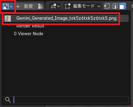 UVエディター上にリンクする画像を閲覧というボタンがあり、これを押すと先ほどシェーダーエディターに置いた画像の名前が表示された。