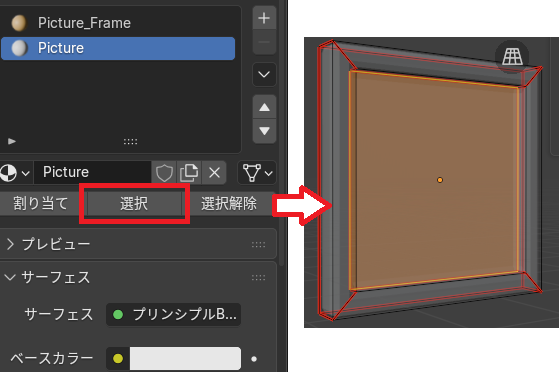 絵のマテリアル部分のみ選択