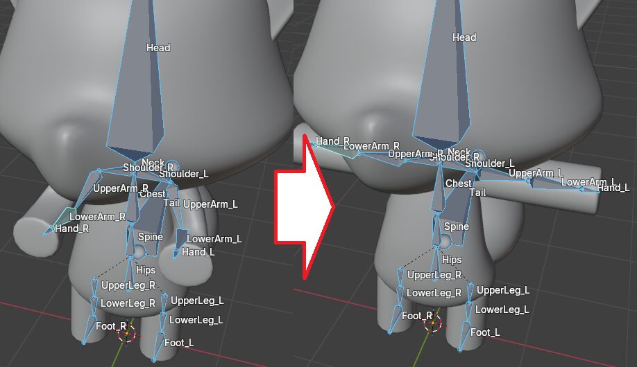 尻尾部分にもボーンが入っているが、このボーンを動かすと胴体部分の一部も動いてしまう。これをなくす。