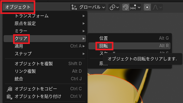 遊んだ後は「オブジェクト」メニュー→「クリア」→「回転」で元に戻しましょう。